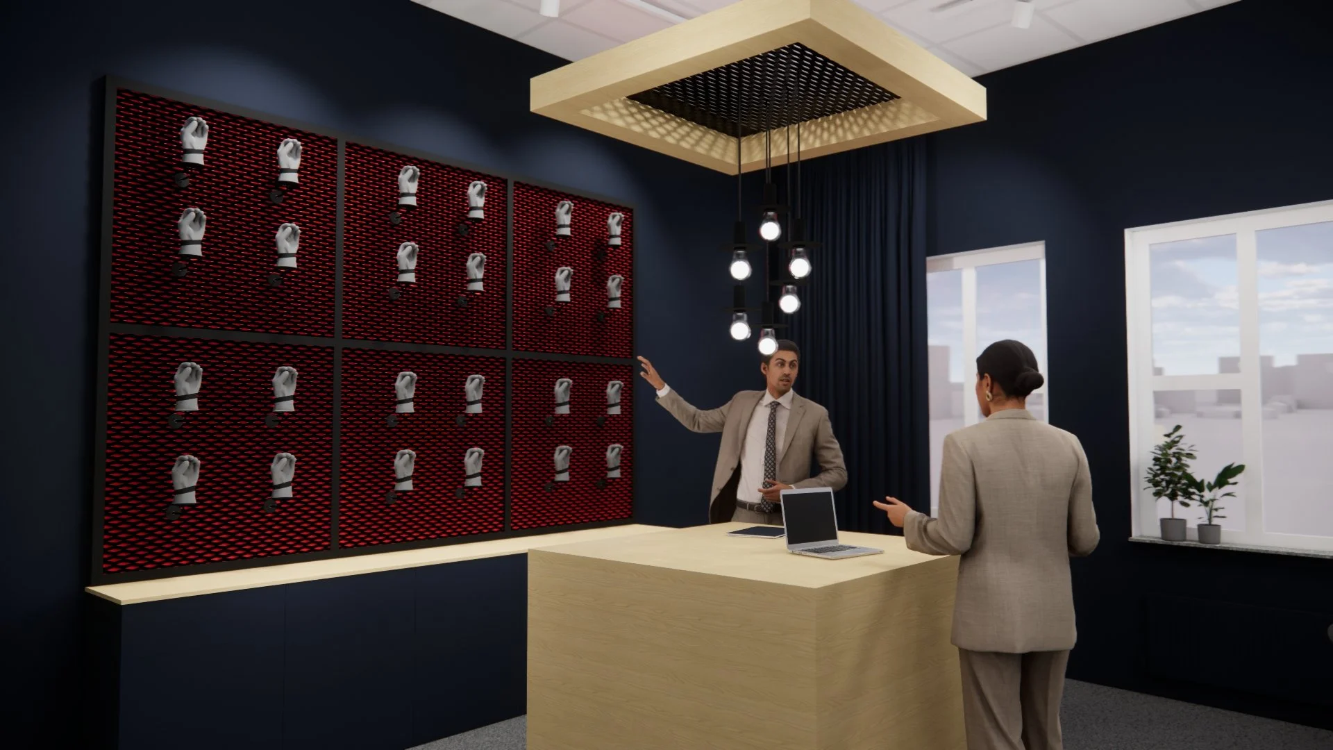 Idé och design av showroom till Guide Gloves. Planlösning och specialanpassad inredning för kontor, produktdemo och möten.