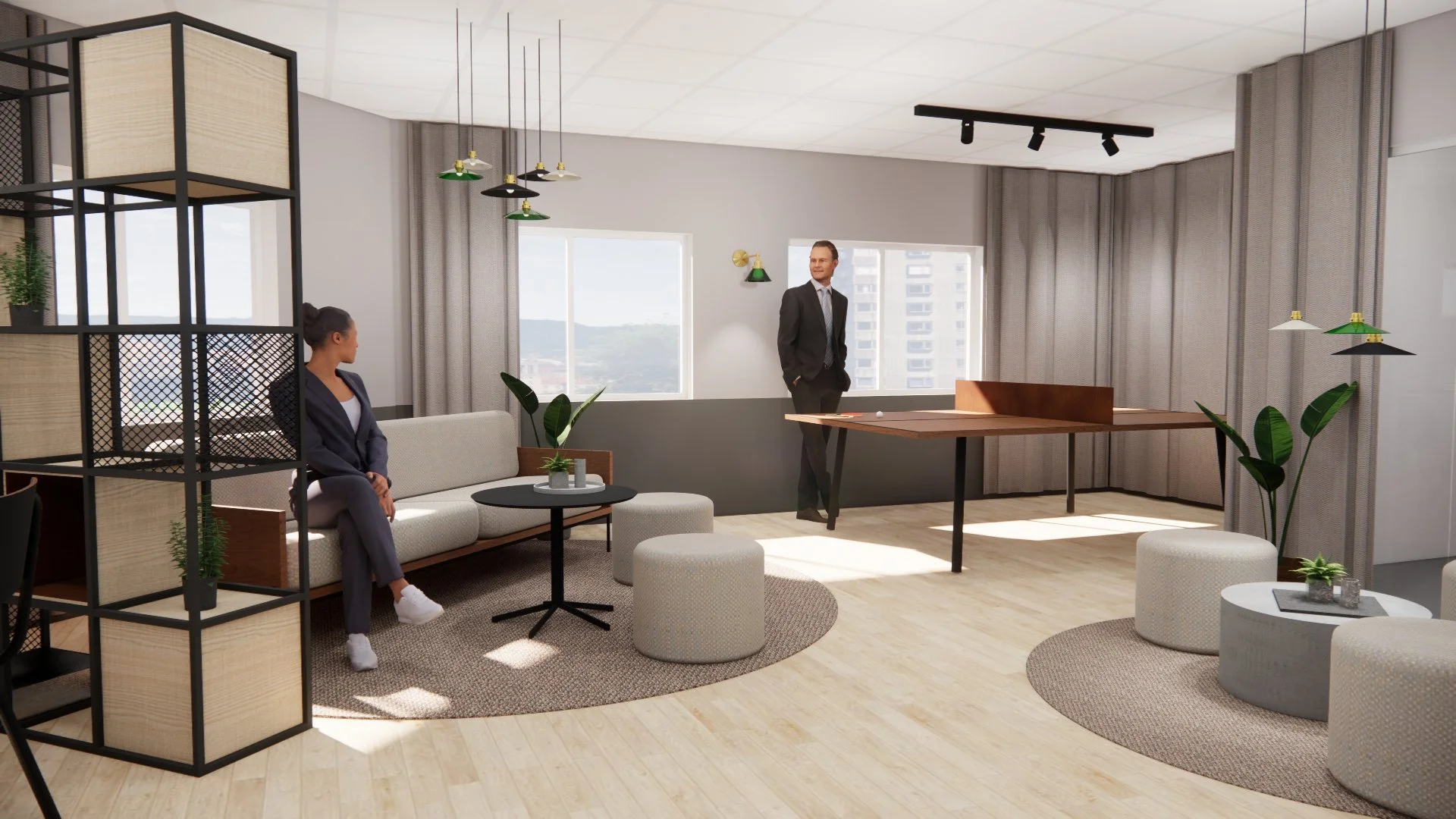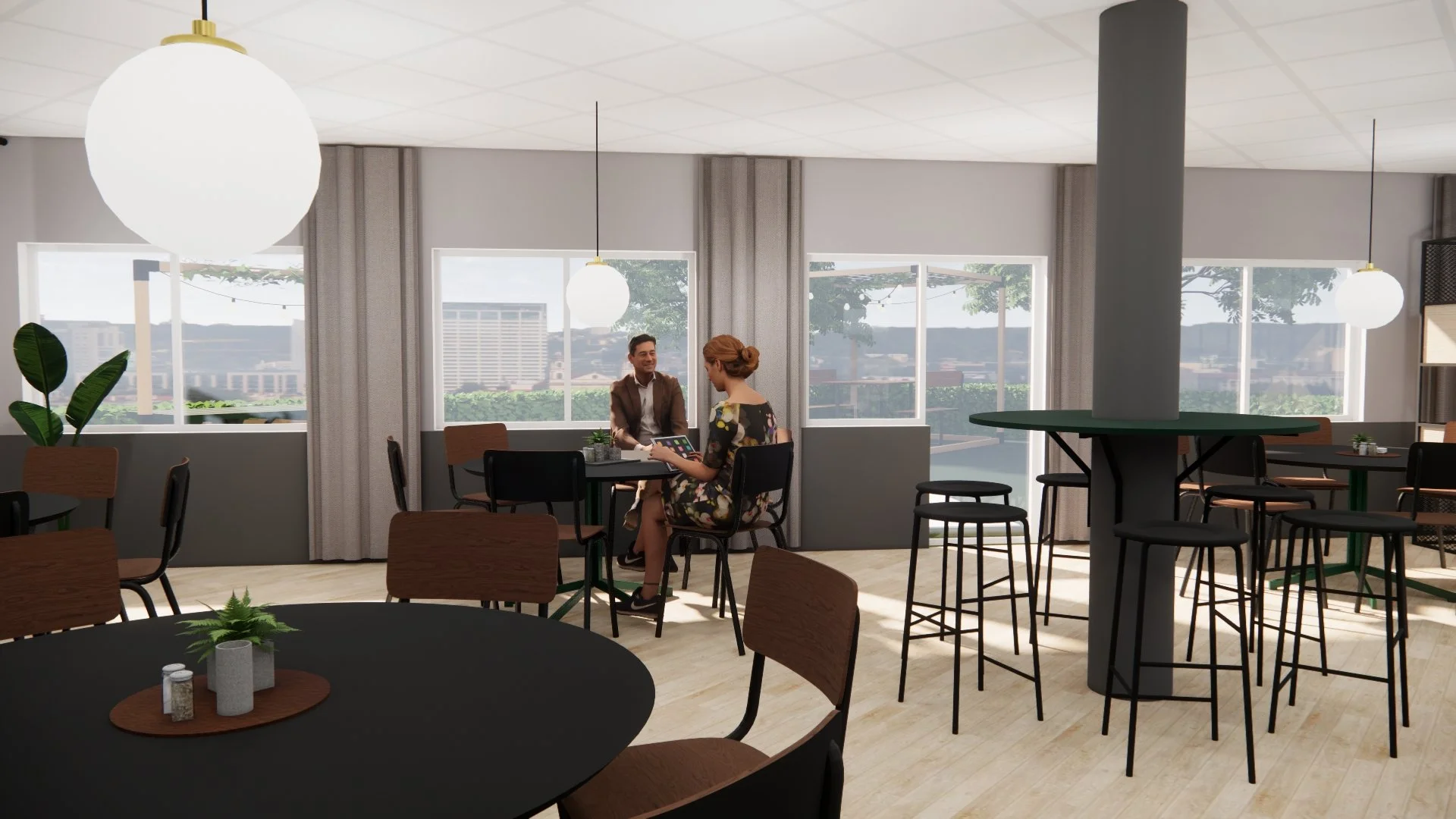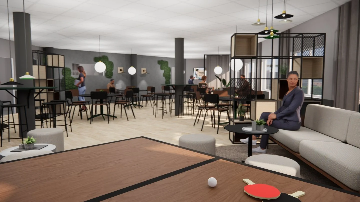Idé och design till matsal. Planlösning och specialanpassad inredning för möten, lek och häng.